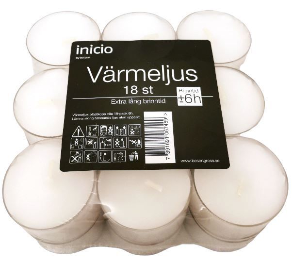 Välj kategori Click & collect Inicio · Värmeljus 6h, 18-pack, Plastkopp 39 kr Lägg i varukorg Click & collect Beskrivning Värmeljus med plastkopp, 6h. 18-pack Art.nr: 31476