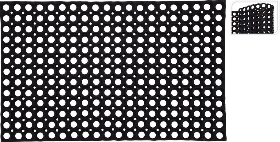 Robust dörrmatta i gummi som effektivt tar bort smuts från skorna. Lätt att rengöra och tålig för alla väder.