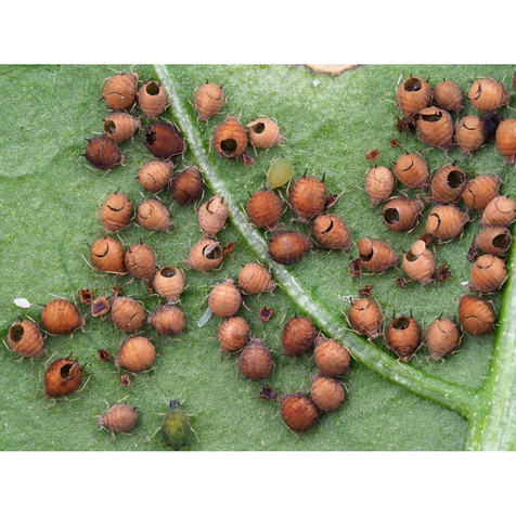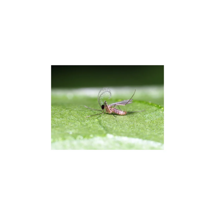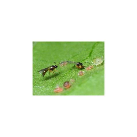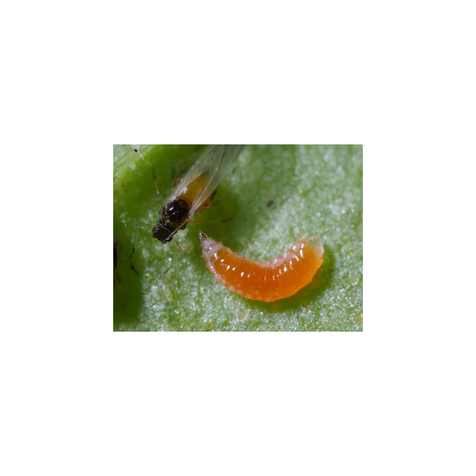 En blandning av gallmygga (ca 200 st) och parasitstekel (ca 100 st) mot angrepp av bladlöss. Beställningar fram till söndag kväll skickas tisdagen därpå. Bladlusgallmyggan (Aphidoletes aphidimyza) I blandningen finns puppor av gallmygga. Ur pupporna kläcks vuxna gallmyggor som flyger ut och finner kolonier med bladlöss, där de lägger röda små ägg. När äggen kläcks kommer det ur en rödaktig larv (ca 5 mm lång). Den är ett riktigt rovdjur som dödar och suger ut en stor mängd bladlöss. Efter ca en vecka förpuppar den sig i jorden, där den ligger i 14 dagar, och så fortsätter en ny cykel av gallmyggor. Bladlusparasitstekeln (Aphidius colemani) Parasitstekeln levereras som en blandning av kokonger och vuxna parasitsteklar. Parasitstekeln letar efter bladlöss och lägger ägg inuti dem. Efter ca 10 dagar sväller lusen upp och blir till en gråbrun kokon, kvar fastsittande på växten. Det påminner nästan om papier-maché. Efter ca 2 veckor gnager sig en ny parasitstekel ut genom kokonen och är klar att finna nya bladlöss. Bruksanvisning Vid kraftiga angrepp kan med fördel en väl tilltagen dusch av vatten eller insektssåpa utföras på växten innan nyttodjuren sätts ut. Asken med nyttodjur öppnas först ute i växthuset nära de angripna växterna. Placera asken under växterna i skuggan, till exempel under en lerkruka (med hål i). Härifrån tar insekterna över bekämpningen. Följ bekämpningen Bladlusgallmyggans larver lämnar döda utsugna bladlösskal, som kan ses på växten. Kokonger av parasiterade bladlöss från parasitstekeln syns efter ca 14 dagar. Tittar man med en lupp på den parasiterade bladlusen kan man se ett hål. Det är en nykläckt parasitstekel som skurit sig ut ur bladlusen.