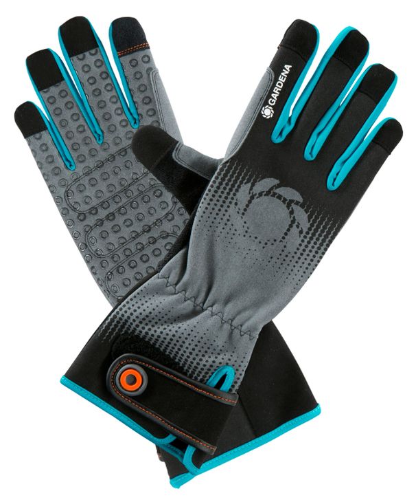 Buskhandsken har silikonbeläggning på handflatan som gör att sekatören ligger säkert i handen och inte glider under trädgårdsarbetet. Om du vill kontrollera något på din smartphone under arbetet behöver du inte ta av handsken: Tack vare mobilpekfunktionen på tummen och pekfingret kan du använda din smartphone med handsken på. En annan egenskap hos den smartphonekompatibla buskhandsken är Oeko-Tex® Standard 100-certifieringen, som innebär att textilierna som används är fria från skadliga ämnen.