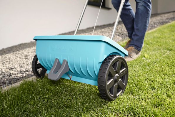 Den speciella spridningsvalsen hjälper dig att fördela materialet jämnt så att det alltid hamnar där det ska vara. Skjutlåsning med tätningskant säkerställer att det inte läcker ut något spridningsmaterial oavsiktligt, och att det inte heller läcker efter användning. När du styr spridaren får du bra stöd på alla ytor tack vare de stora hjulbanorna med kullager som ger ett stadigt grepp och bästa möjliga dragkraft. Dessutom är vagnen tillverkad av material som högkvalitativ plast, ett robust aluminiumfäste och ett rep i rostfritt stål, vilket gör den motståndskraftig mot korrosion och löper mindre risk att gå sönder. Vatten är det enda som behövs vid rengöring, spola av den med vattenslangen. Den höga produktkvaliteten på Universalspridare L återspeglas i den 25-åriga GARDENA-garantin.