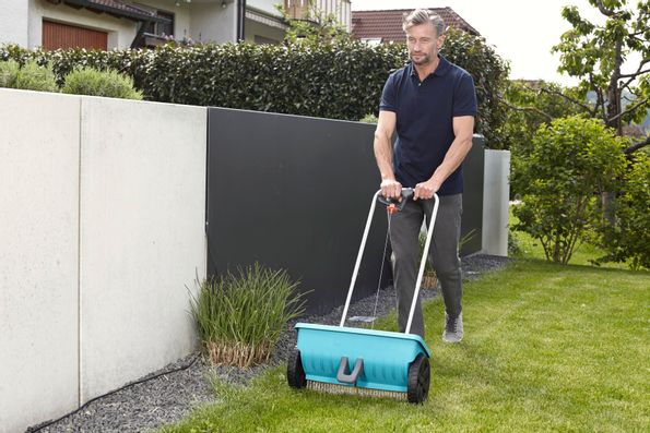 Passion varje säsong! GARDENA Universalspridare L låter dig uppleva entusiasm för din trädgård året runt. Använd den till exempel för att gödsla gräsmattor på upp till 400 m² i tillväxtfasen eller för att sprida vinterkorn i frost och snö. Du kan reglera kvantiteten med det ergonomiska handtaget och den praktiska öppnings/stängningsfunktionen som gör att du noggrant kan dosera spridningsmaterialet i upprätt ställning, utan att böja dig ner.