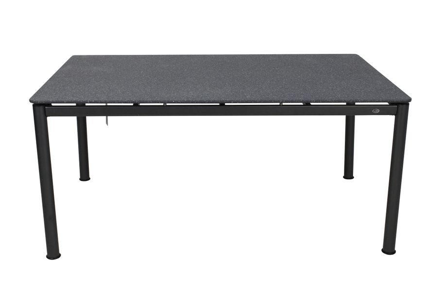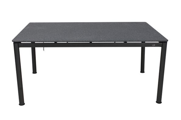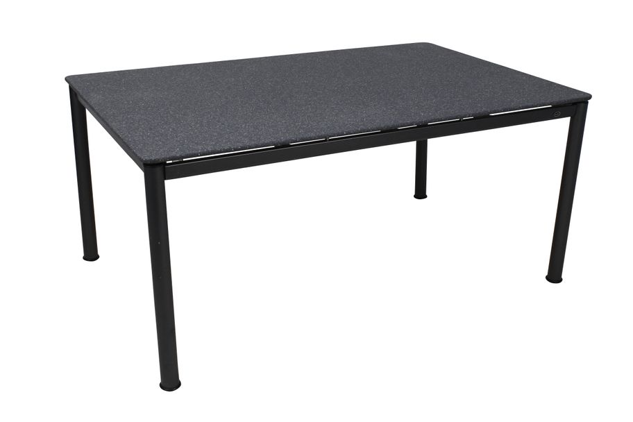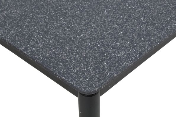 Snyggt soffbord tillverkad av antracitgrå aluminium stomme med bordstopp i granitfärgad polystone.